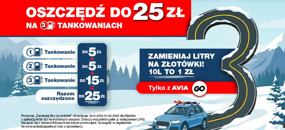 Zamieniaj litry na złotówki z AVIA GO i oszczędzaj do 25 zł!